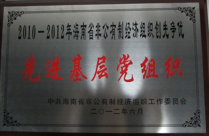 在2010-2012年海南省開展的非公有制經(jīng)濟(jì)組織創(chuàng)先爭優(yōu)活動中,華宇集團(tuán)三亞旅業(yè)黨支部榮獲“先進(jìn)基層黨組織”稱號。7月28日,中共三亞市委統(tǒng)戰(zhàn)部副部長、市工商聯(lián)黨組書記、市非公經(jīng)濟(jì)黨工委書記黃明崇來到三亞華宇旅業(yè)公司,為華宇集團(tuán)三亞旅業(yè)黨支部授匾。